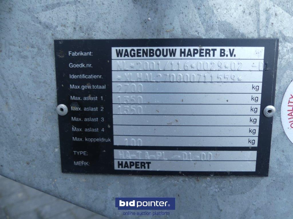 Hapert huiftrailer tandem as. Deze Hapert is zo goed als nieuw wij zijn de 2e eigenaar en wij hebben deze aanhangwagen maar 1x gebruikt. de vorige eigenaar heeft deze aanhanger ook maar een paar keer gebruikt. bekijk de foto's, voor meer informatie graag contact met ons opnemen per email. Bezichtiging mogelijk op afspraak. Hapert tandem axle trailer. This Hapert is as good as new, we are the 2nd owner and we have only used this trailer once. the previous owner only used this trailer a few times. view the photos, for more information please contact us by email. Viewing possible by appointment.