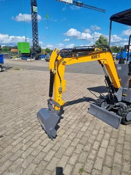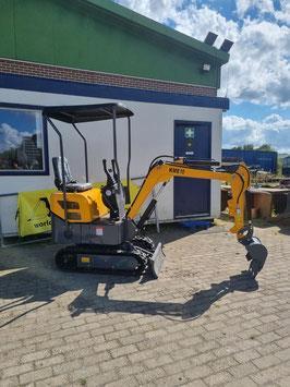 KME-10 Aanwezig - 30cm grondbak - 1 extra functies - Mechanische bediening Specificatie Type: KME-10 Brandstof: Diesel Type: Rupskraan Bouwjaar: 2024 Motor Merk: KOOP vermogen: 7 kW Hydrauliek druk: 16 Mpa Hydrauliek flow: 18 L/min Max. Hijsvermogen: 450kg Kleur: geel / zwart Eigen gewicht machine: 900 kg Rijwerk: rupsen Rijsnelheid: 1.5 km/u Volume schepbak: 0.025 m³ Afmeting: 2800 x 850 x 2600 (hxbxl) Max. Graaf diepte: 1720 mm Max. Stort hoogte: 1450 mm Max. Graaf radius: 3030 mm Max. Graaf hoogte: 2490 mm