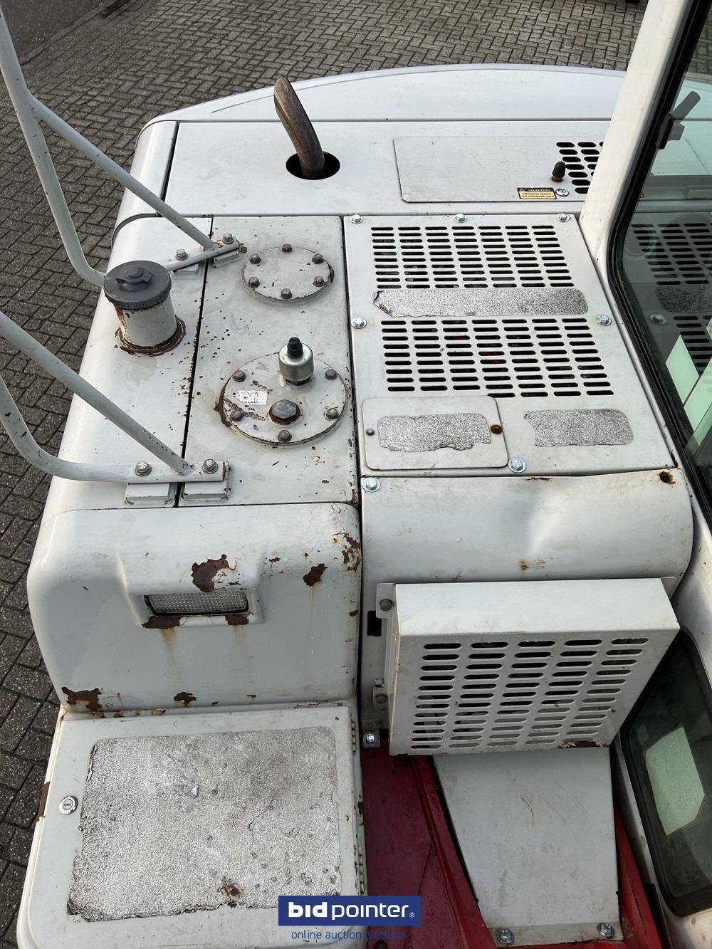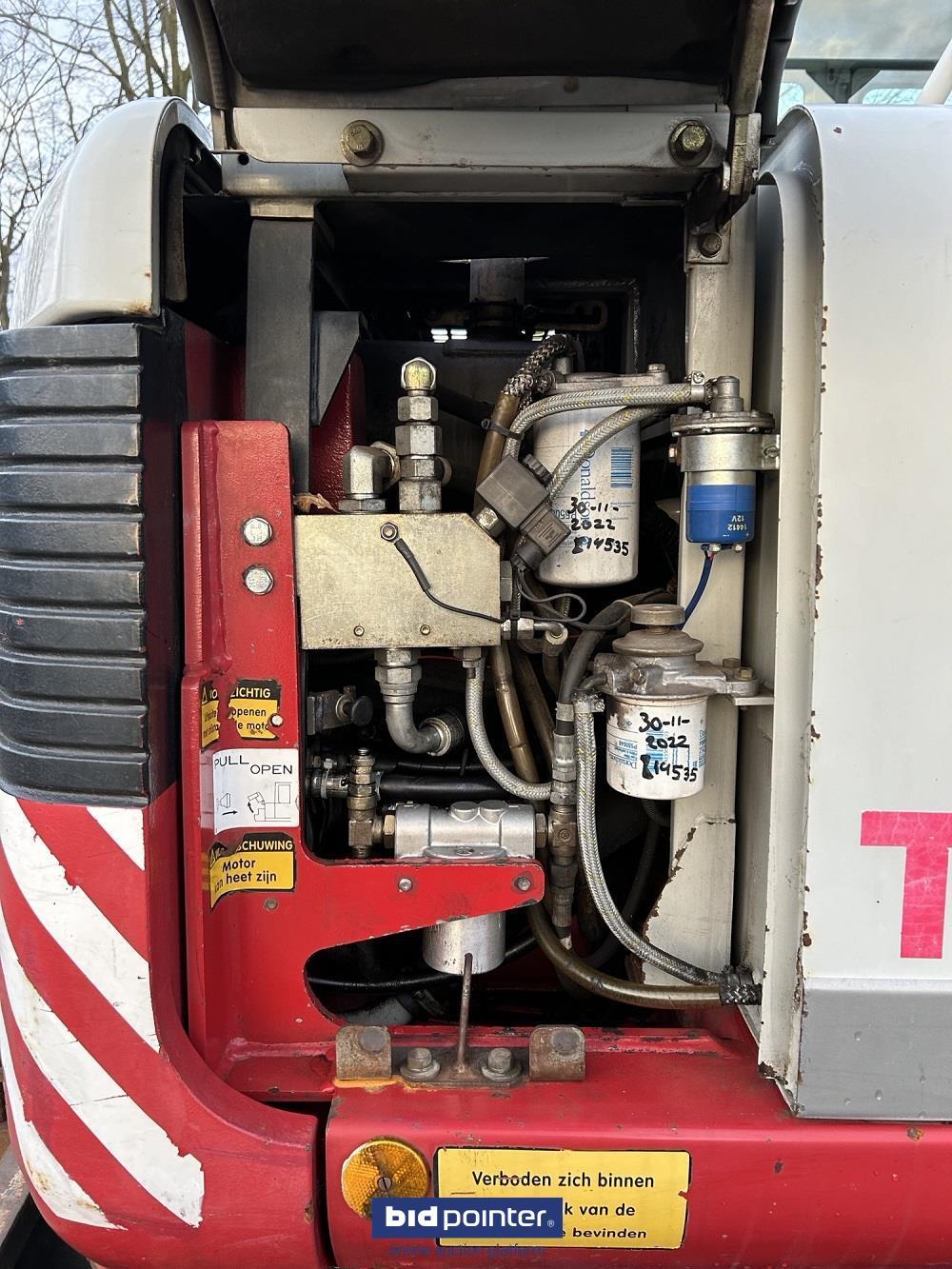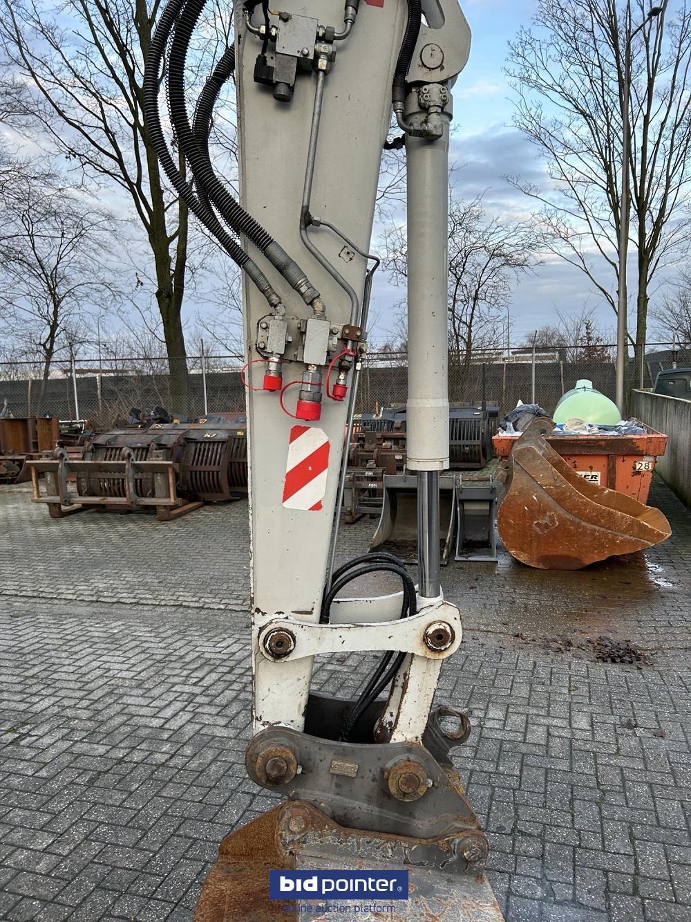 Mobiele graafmachine, met verstelgiek, snelwissel en 3 bakken.