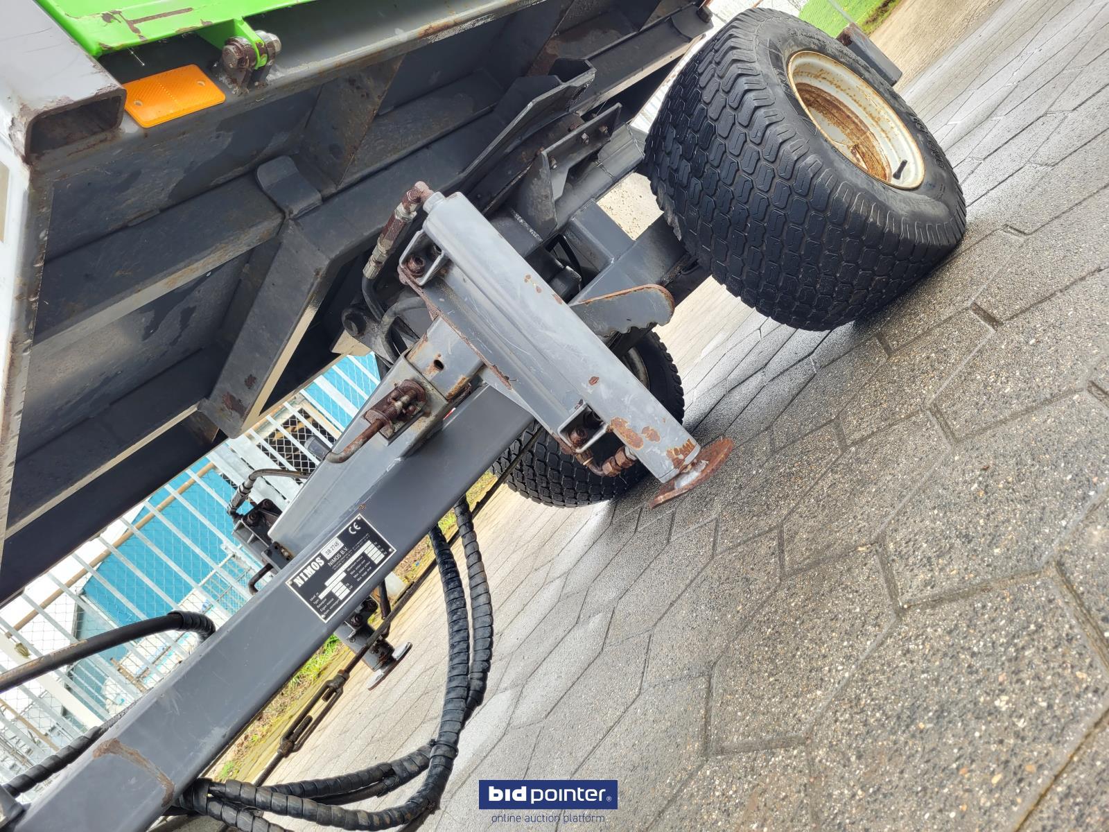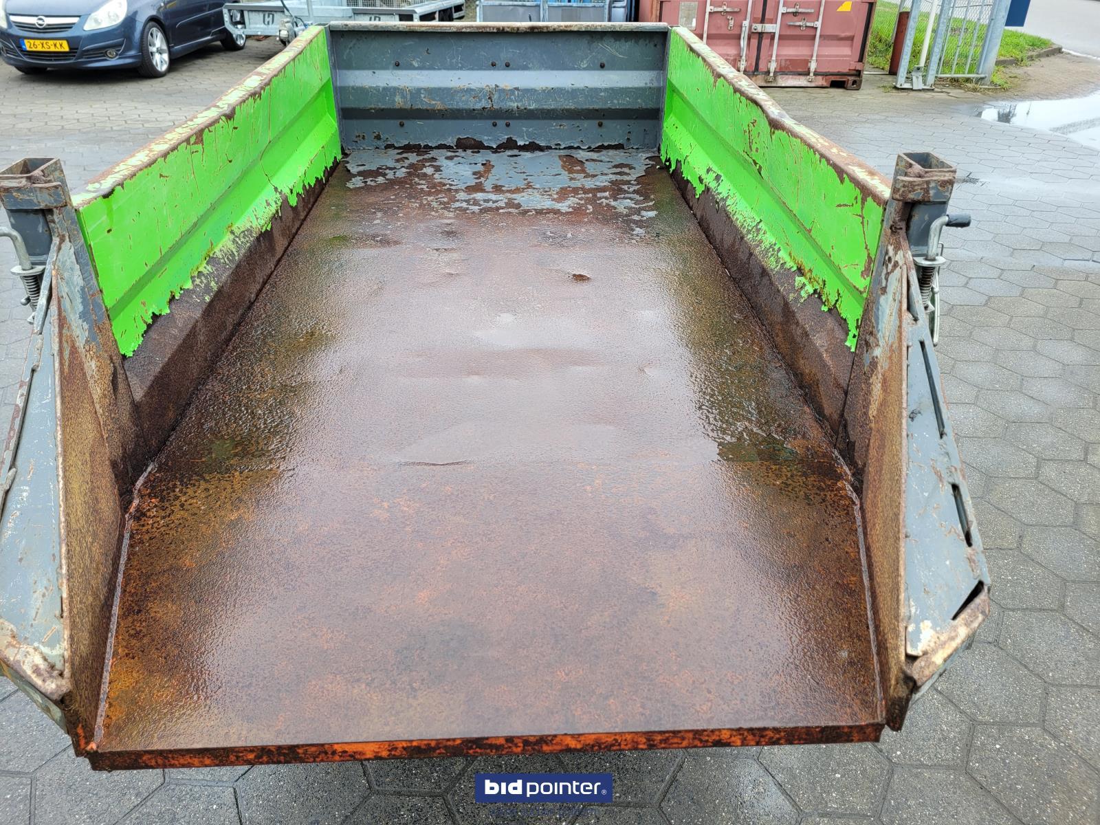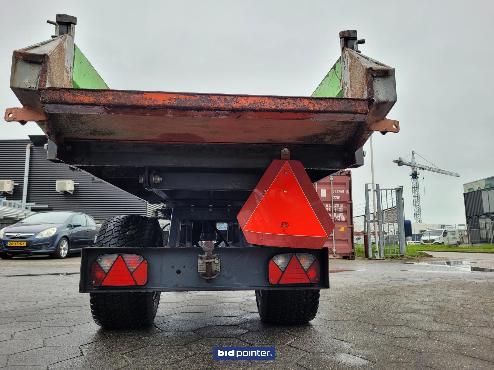 Leuk gebruikte kieper. 1.5t. Eigengewicht 600kg. Laadvermogen 1.5t. Nederlands kenteken erbij. Kiepbak staat op een draaikrans en kan daarom elke gewenste stand kiepen. Incl stempelpoten stempel plaatjes iedeaal voor wat krappere ruimtes. Werkt op een dubbelwerkend hydraulisch ventiel en heeft een eigen ventielen blok zie foto's om de functies van de kieper te bedienen. Absoluut niet door geroest!!. Wel gebruikt. Afmetingen 2m lang 1m breedt. Klep achter is een vast deel dus als je die af wilt sluiten zou er een schot tussen geplaatst moeten worden. Nice used tipper. 1.5t. Net weight 600kg. Load capacity 1.5t. Dutch license plate included. The tipper is mounted on a slewing ring and can therefore be tilted to any desired position. Including outrigger legs and outrigger plates, ideal for tighter spaces. Works on a double-acting hydraulic valve and has its own valve block, see photos, to operate the functions of the tipper. Absolutely not rusted!! Well used. Dimensions 2m long 1m wide. The rear hatch is a fixed part, so if you want to close it, a partition would have to be placed between it.