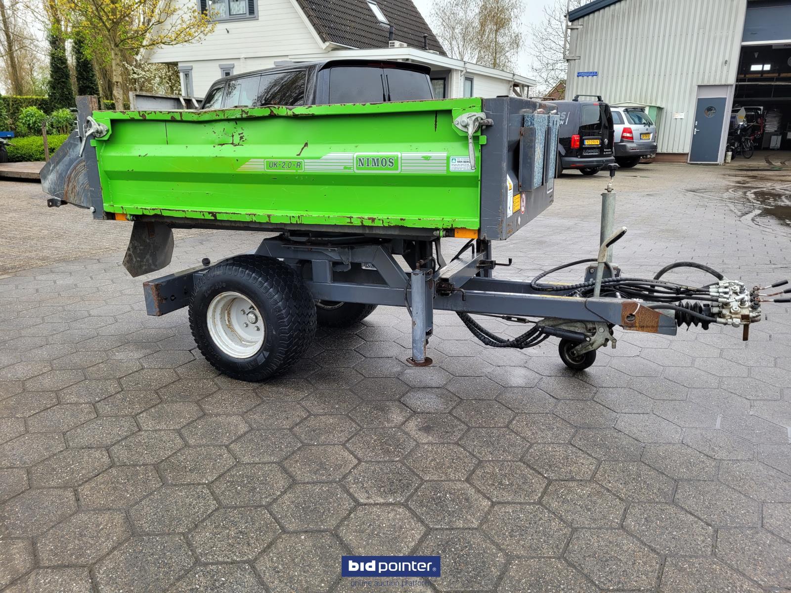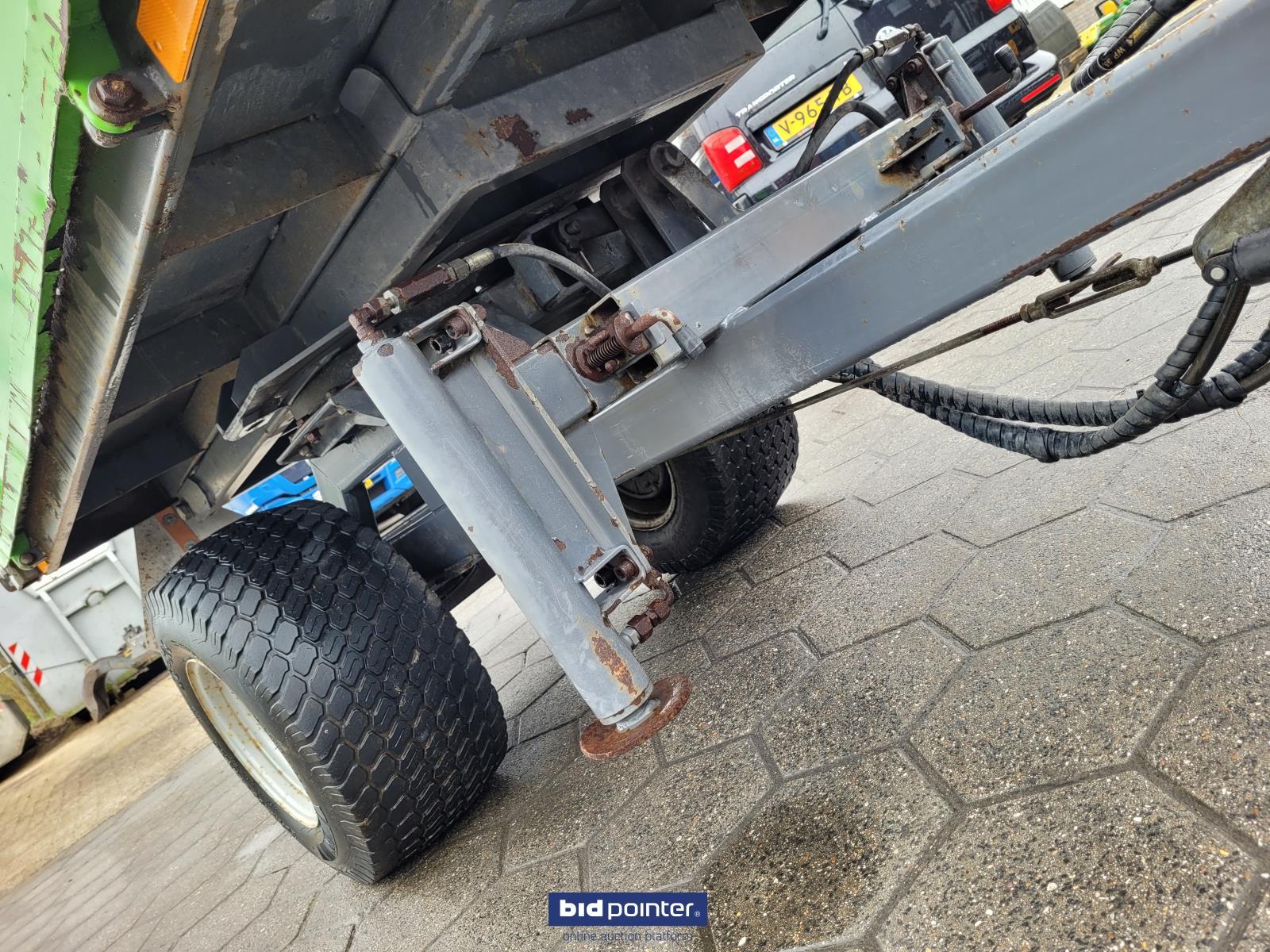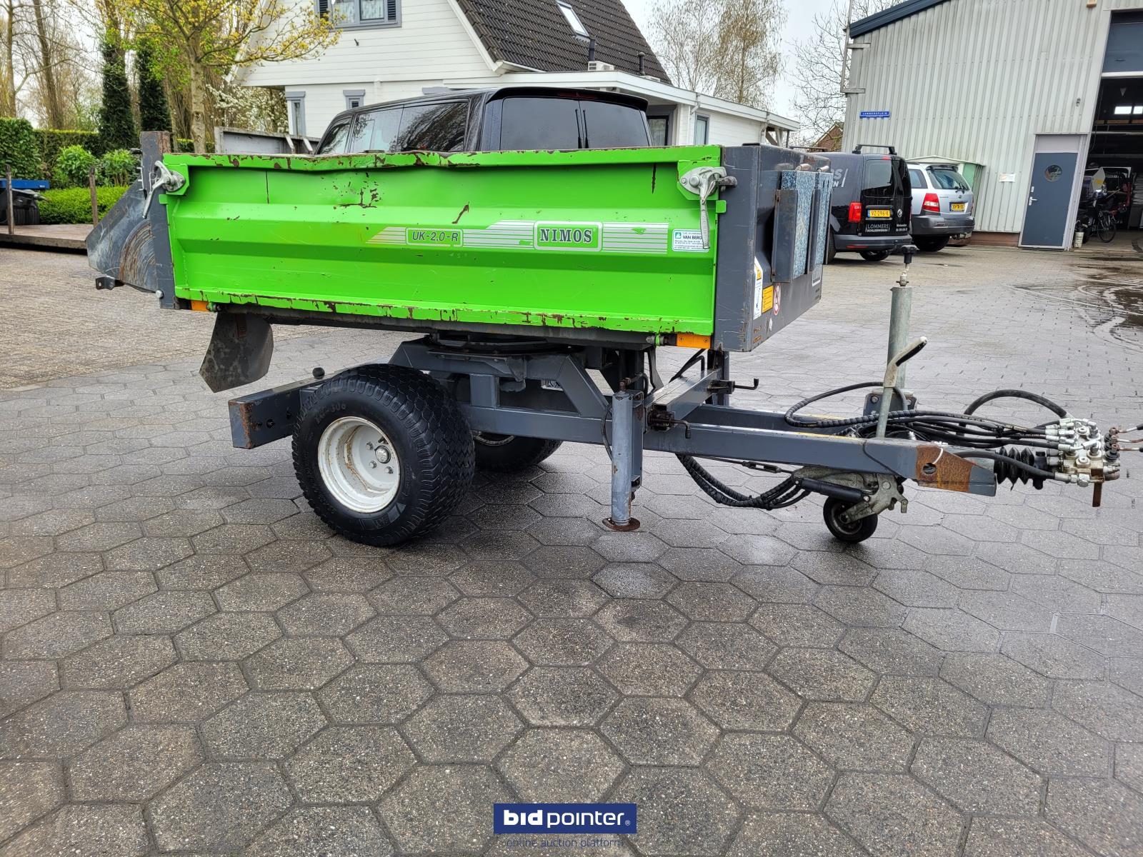 Leuk gebruikte kieper. 1.5t. Eigengewicht 600kg. Laadvermogen 1.5t. Nederlands kenteken erbij. Kiepbak staat op een draaikrans en kan daarom elke gewenste stand kiepen. Incl stempelpoten stempel plaatjes iedeaal voor wat krappere ruimtes. Werkt op een dubbelwerkend hydraulisch ventiel en heeft een eigen ventielen blok zie foto's om de functies van de kieper te bedienen. Absoluut niet door geroest!!. Wel gebruikt. Afmetingen 2m lang 1m breedt. Klep achter is een vast deel dus als je die af wilt sluiten zou er een schot tussen geplaatst moeten worden. Nice used tipper. 1.5t. Net weight 600kg. Load capacity 1.5t. Dutch license plate included. The tipper is mounted on a slewing ring and can therefore be tilted to any desired position. Including outrigger legs and outrigger plates, ideal for tighter spaces. Works on a double-acting hydraulic valve and has its own valve block, see photos, to operate the functions of the tipper. Absolutely not rusted!! Well used. Dimensions 2m long 1m wide. The rear hatch is a fixed part, so if you want to close it, a partition would have to be placed between it.